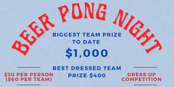HFNC Beer Pong Tournament. - Saturday May 25th - 1st games start @ 7:00pm sharp. - $60 entry per team of 2 > limit of 70 teams so get in quick! - Dress up with your partner - $1000 prize for winning team  - $400 prize for best dressed team - Rules and draw will be displayed on the night, if not before. Teams must be entered by 10:00pm, Thurday May 23rd so draw can be finalised.