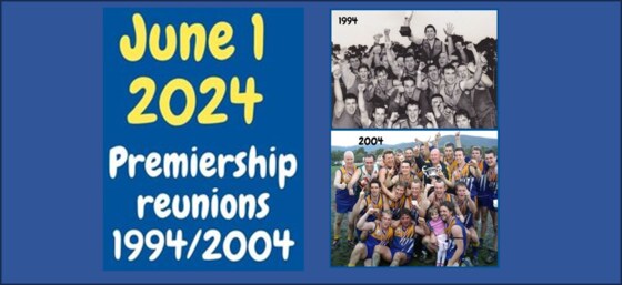 It's 30 years since the breakthrough Premiership of 1994 and 20 years until the next in 2004 - we love to see all the people that were part of these two games on June 1. Can you let us know whether you are coming. Its $10 a head to cover finger food. Looking forward to catching up